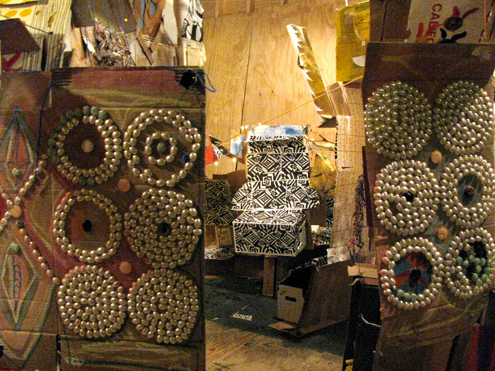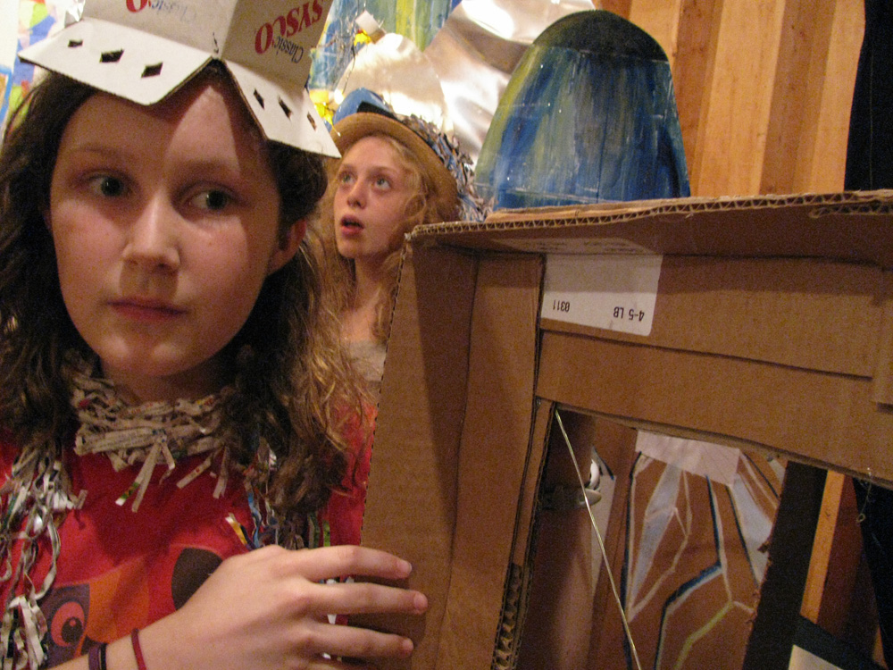 Fort Magistrate – 2 week collaboration with Farm Arts campers and staff at Ballibay, a camp specializing in performing and fine arts. Together, we created the inhabitable Fort Magistrate out of cardboard refuse solely from the kitchen. The Fort People video was made with campers in the Fort and installed in the Fort for the final camp wide open house.